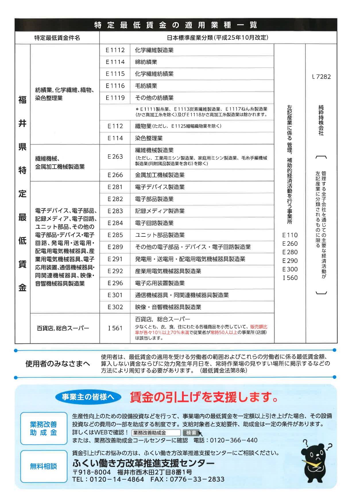 福井県特定最低賃金改正について(繊維機械、金属加工機械製造業)